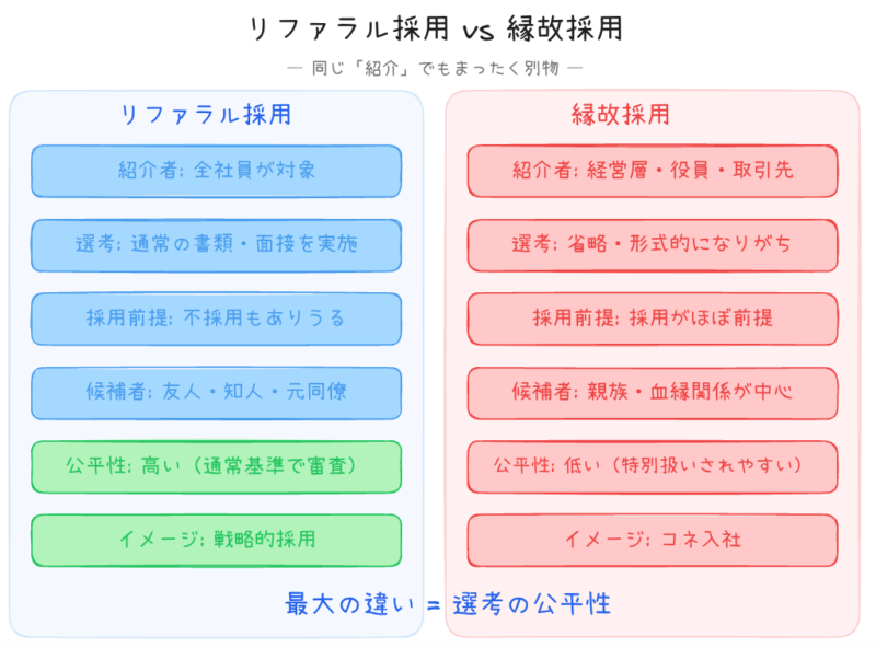 リファラル採用と縁故採用の違い|比較表でスッキリ理解